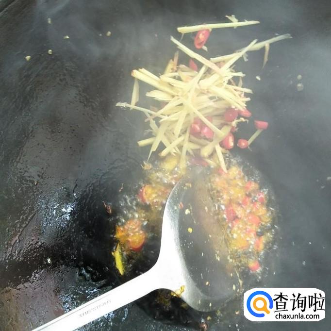 加入辣椒,生姜,花椒爆炒,然后加入少许酱油,爆炒