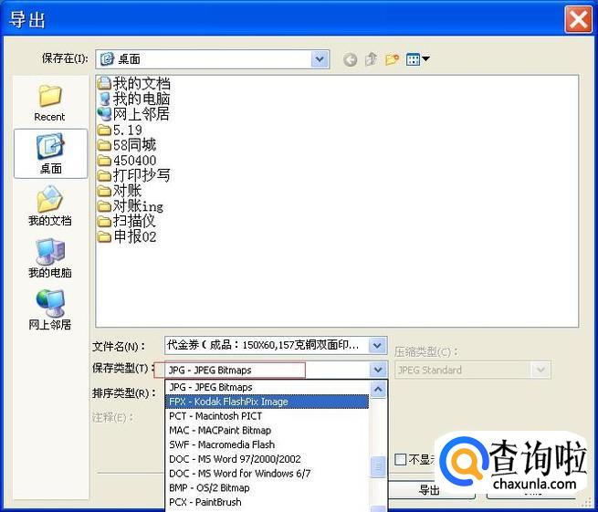 然后选择导出的位置及导出的格式。在保存类型中,一定要选择jpg格式。
