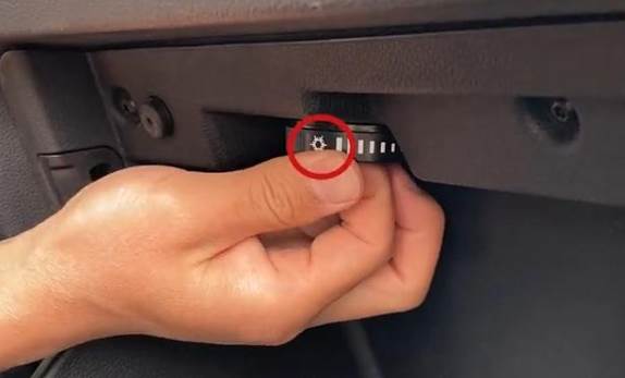 步骤4、找到控制储物箱空调开关的旋钮。