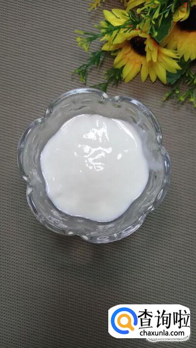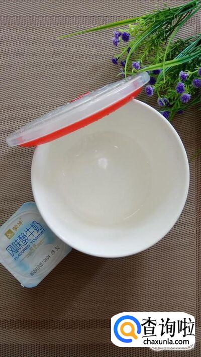 将一百毫升酸奶,倒入容器中。最好是准备原味的酸奶,这样更容易发酵成功。