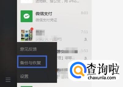 然后点击电脑微信中的备份与恢复,如下图所示。