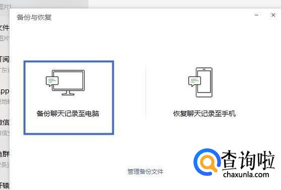接着点击备份聊天记录至电脑,如下图所示。