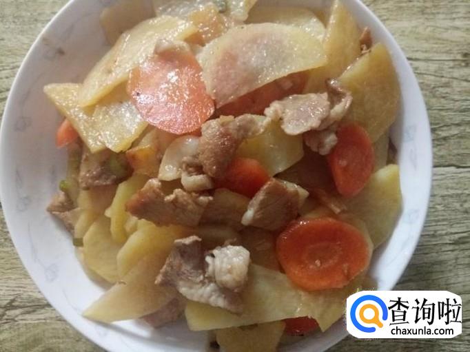 土豆、肉片、胡萝卜、生抽、耗油、大葱