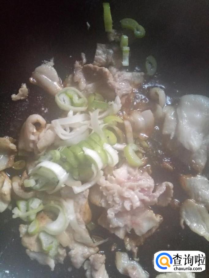 把肉片煸炒一分钟,放入生抽一勺,把葱花放进去。