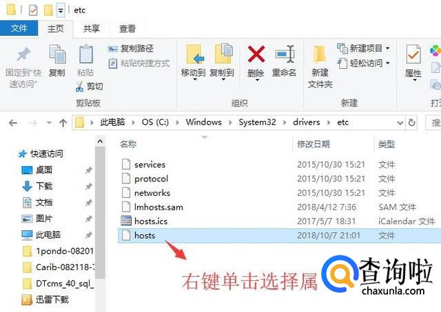 首先定位到hosts文件的位置,然后右键单击选择属性选项,如下图所示