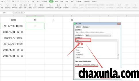 在弹出的对话框中选择“TEXT”函数点击确认。