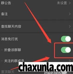 进入群聊消息设置页取消点亮折叠,该群聊功能即可找出。