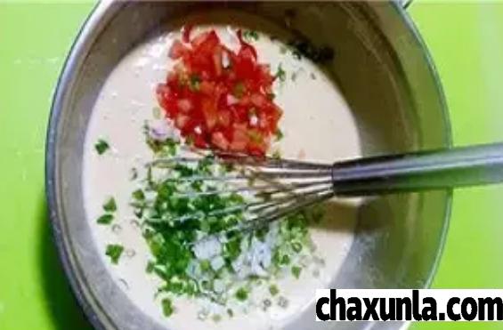 还可以放入喜欢吃的食材,比如香葱火腿儿,西红柿丁。