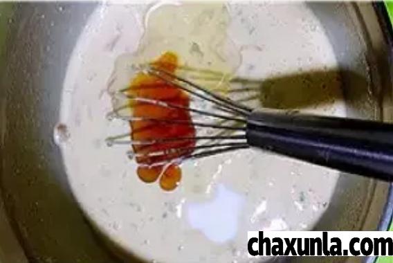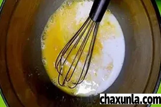 首先准备适量鸡蛋加入温水牛奶,搅拌均匀。
