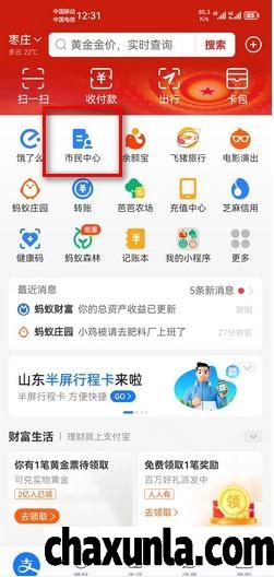 先打开支付宝app页面找到市民中心。