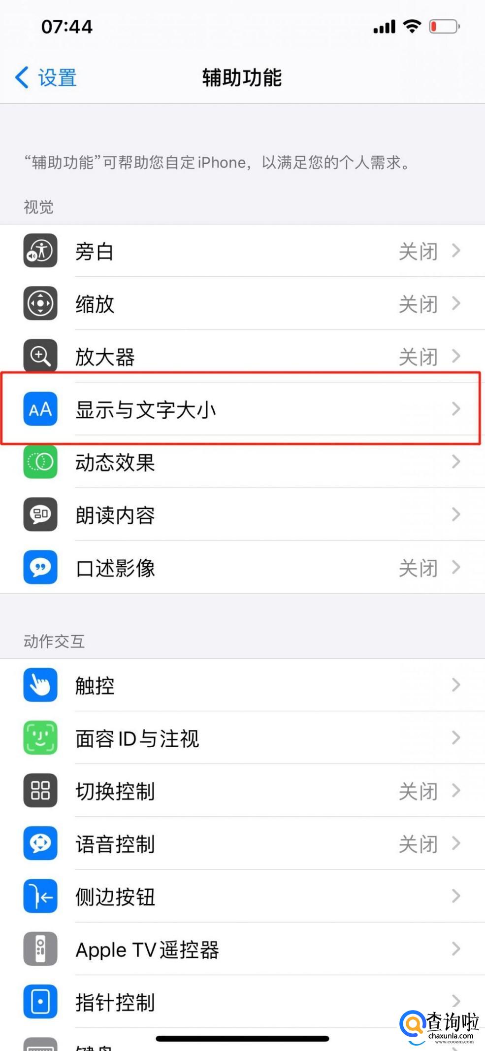 打开之后点击【显示与文字大小】