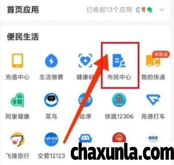 首先打开支付宝APP点击市民中心。