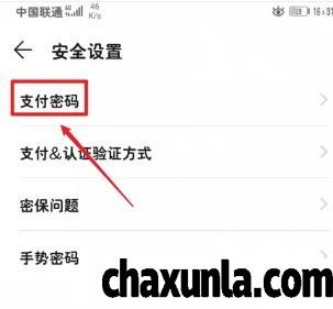 点击菜单中安全设置,点击支付密码。