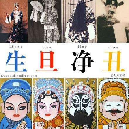 【旦】——女性角色。可分为正旦(青衣)、花旦、花衫、武旦、刀马旦、老旦、彩旦等类型;
