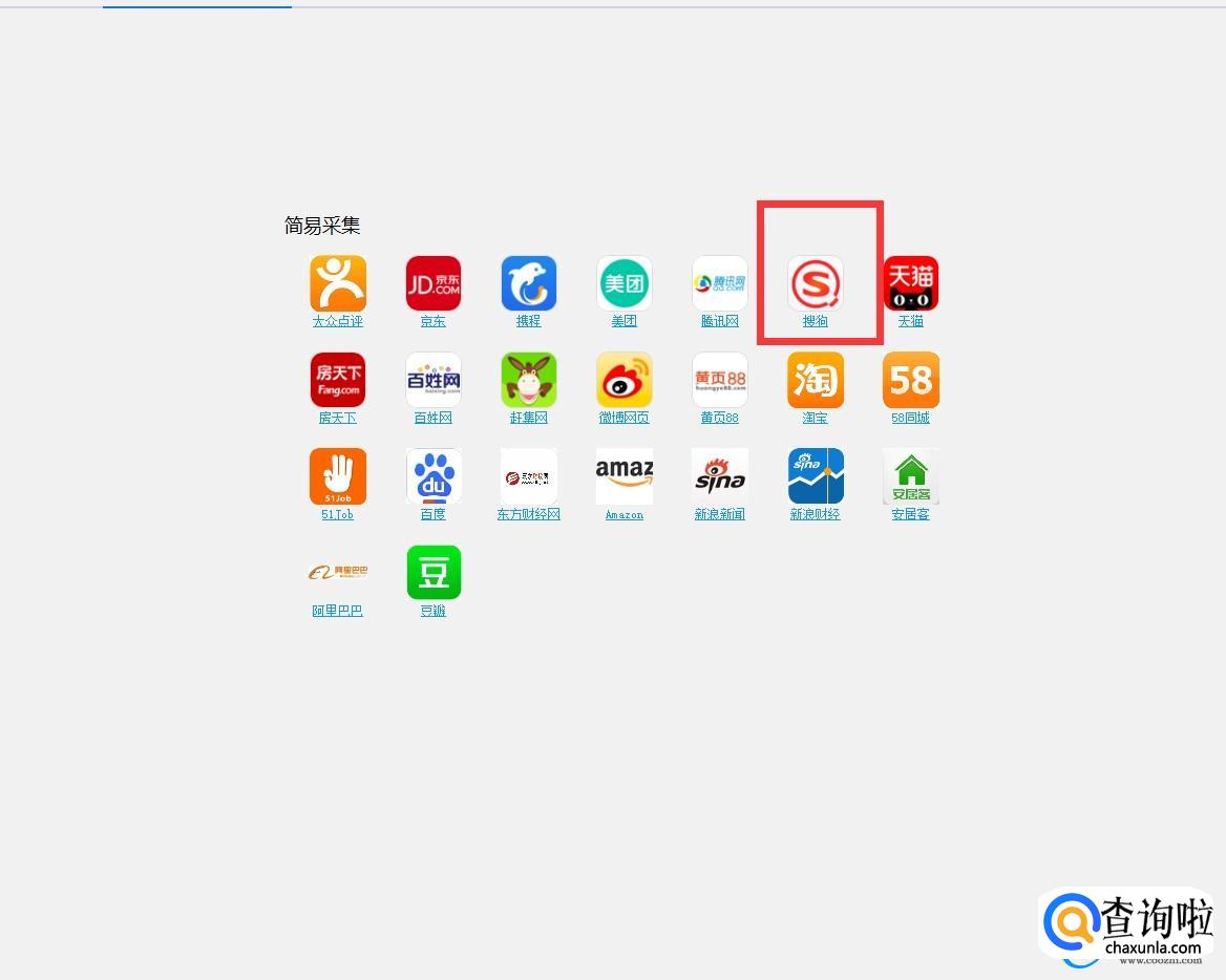 进去之后便可以看到目前网页简易模式里面内置的所有主流网站了,需要采集微信公众号内容的,这里选择搜狗即可。