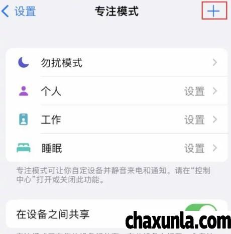 点击右上角的加号,选择专注模式。