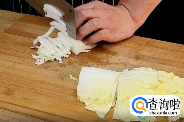 将事先准备好的大白菜清洗干净,控干水分之后切成白菜丝,小米椒清洗干净,控干水分直接切成圈。