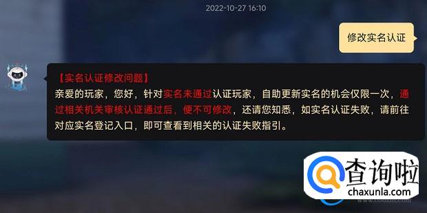 输入“修改实名认证”。