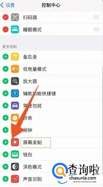 进入控制中心,点击屏幕录制前面的加号。