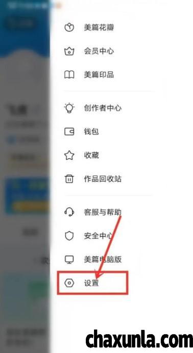 打开以后会弹出右侧的菜单栏,并在里面找到【设置】的图标。