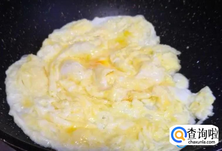 此时锅中放入适量的油,将油烧成七成热之后,再将事先准备好的蛋液放到锅中炒熟,将其装出,放到一边备用。