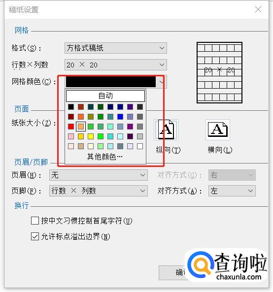 在【行数*行数】一栏默认的是20*20的页面格式,也就是一行20个方格一共20行,这里点击后还可以选择其它格式: