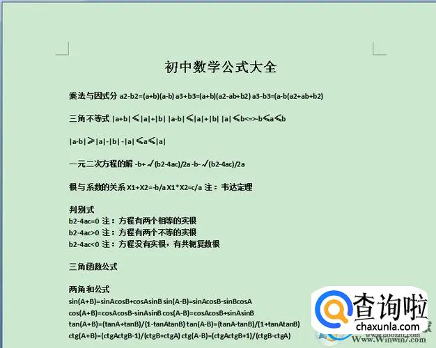上面的两个公式一定要牢记,这是初中数学解方程当中必备的两个公式,另外在初中数学还需要学习到幂的运算性质:a2*a3=a6。