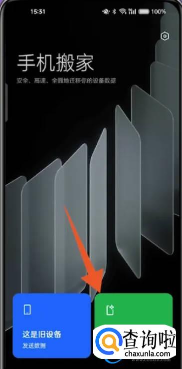 在新oppo手机的桌面上打开手机搬家,进入页面之后,点击页面下方的【这是新设备】。