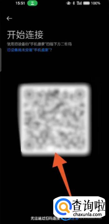 切换到开始连接这个页面后,在页面中查看新手机上的【连接二维码】。