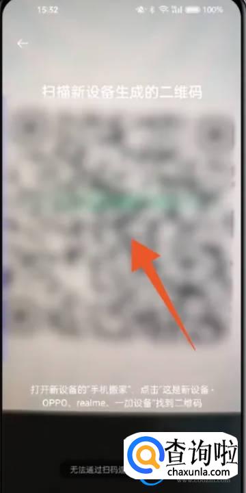 跳转到扫码页面之后,用旧设备扫描新设备上的连接二维码。