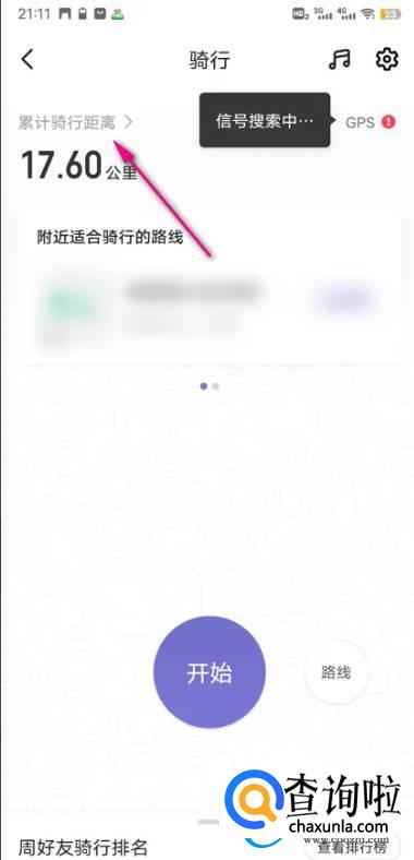 进入骑行界面,点击上方累计骑行距离图标。