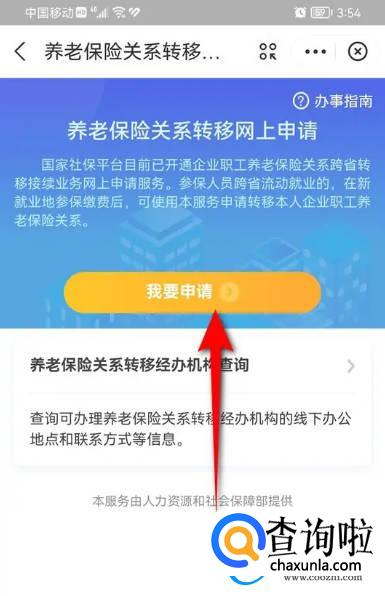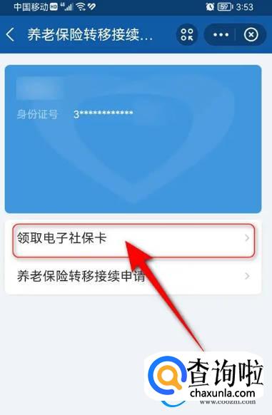 电子社保卡领取成功后,点击“养老保险转移接续申请”。