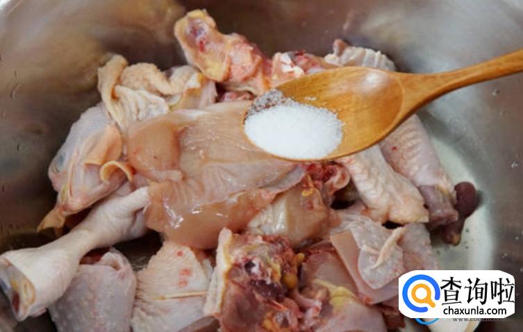 在制作鸡肉时需要对其去腥处理,一般在去腥时首先要将鸡肉浸泡两个小时,去除鸡肉当中的血水,然后再将鸡肉捞出空干水分,使用生抽、老抽以及白糖等等调料进行腌制,腌制半个小时之后,可以将腥味完全去除。