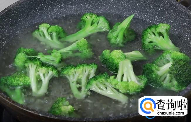 锅中放入适量的水,大火烧至水沸腾之后放入食用油,食盐,西兰花,直接放在水中煮,一分钟之后将西兰花捞出冷却。