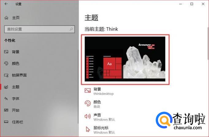 之后我们就可以看到当前主题:Think,这样我们就设置好我们的电脑主题壁纸了。