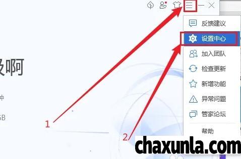 首先在电脑桌面找到电脑管家,并运行在首页右上方菜单图标,选择设置中心。