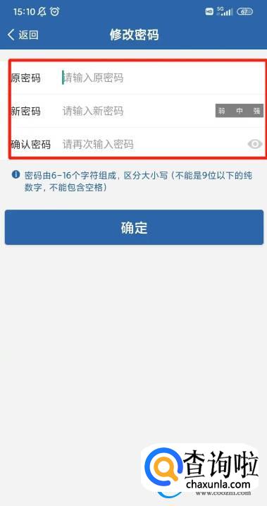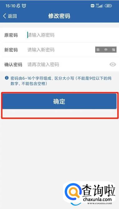 根据提示输入“原密码” “新密码”和“确认密码”打开