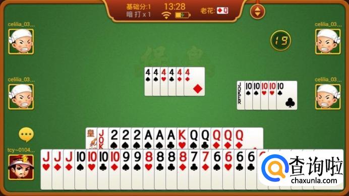 2、可以出套牌、王挂牌、王牌,跟牌时可以选择不出,过牌;