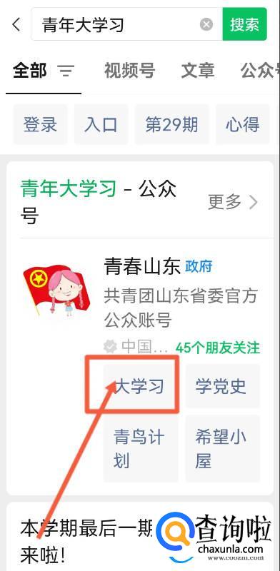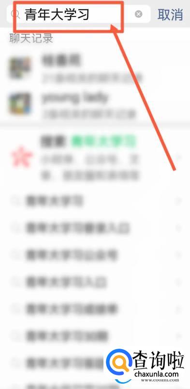 在微信的搜索栏中输入青年大学习,点击搜索
