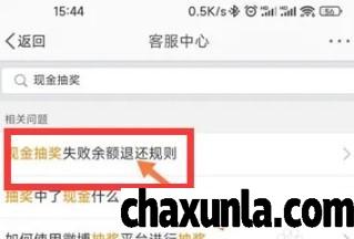 进入客服中心页面,输入现金抽奖失败余额退还规则即可。