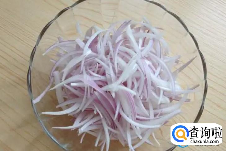 准备好的洋葱,清洗干净,切成丝放到一边备用。