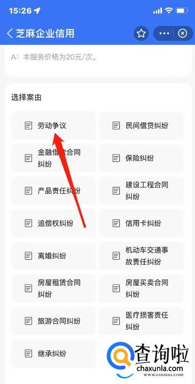 接下来案由选择【劳动争议】。