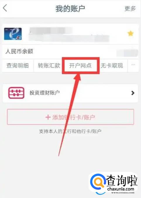 在个人账户界面点击【开户网点】按钮,开户网点就是开户行。