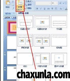 首先打开软件,新建一个幻灯片,点击布局选择垂直排列。