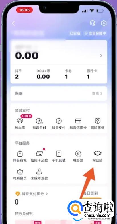 进入到钱包页面之后,点击页面中的【粉丝团】。