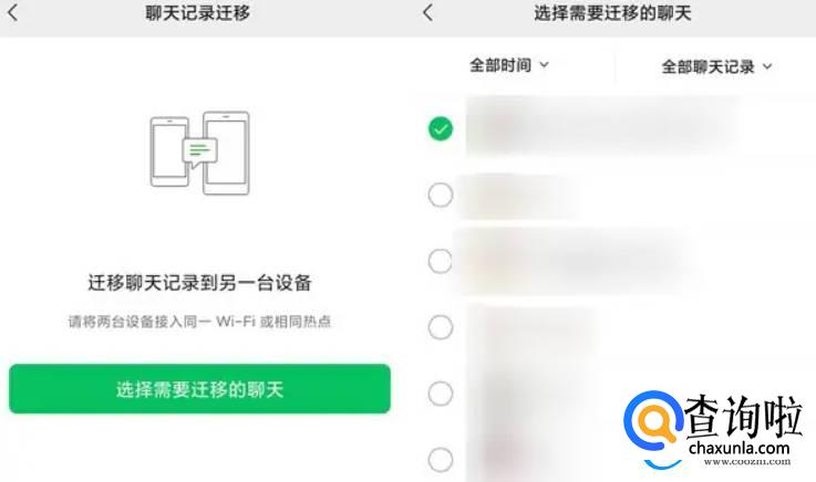 点击选择需要迁移的聊天,并选择聊天对象,点击开始。