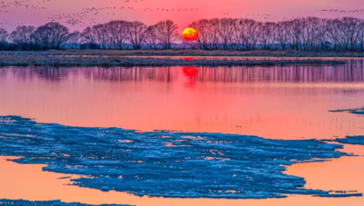 7、 四月的冰河——开冻了;开动了