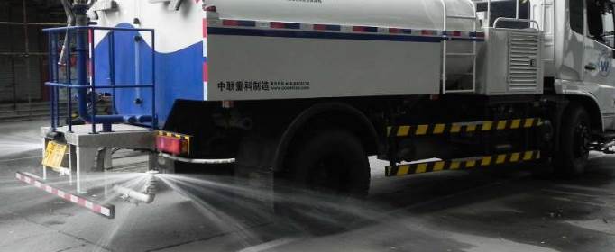 1、清晨的阳光透过洒水车喷洒的水雾化成了一道道美丽的彩虹。