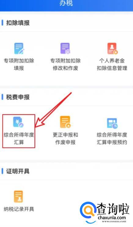 进入办税页面,点击选择【综合所得年度汇算】。