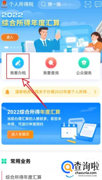打开个人所得税APP首页,点击【我要办税】入口。